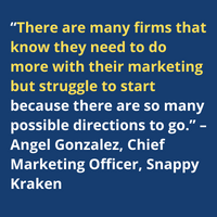 “There are many firms that know they need to do more with their marketing but struggle to start because there are so many possible directions to go,” explains Angel Gonzalez, Snappy Kraken’s Chief Marketing Officer. “Not knowing how to move forward can be paralyzing or lead to poor decisions. The Snappy Kraken Marketing Opportunity Score is exciting because it gives firms a look in the marketing mirror, benchmarked against the marketing activities of the top 25 percent of advisors getting results from online marketing, accompanied by proven tips to refine and build on these areas.”