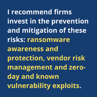 Yenamandra: Any financial advisory startup must implement certain cybersecurity basics, but most wealth management firms are seasoned at the basics and need to address cybercrime trends in 2022, and for that I recommend firms invest in the prevention and mitigation of the three risks described above: ransomware awareness and protection, vendor risk management and zero-day and known vulnerability exploits.