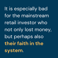 And without question, it is especially bad for the mainstream retail investor who not only lost money, but perhaps also their faith in the system.