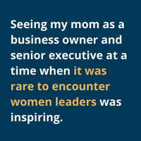 Without question, seeing my mom as a business owner and senior executive at a time when it was rare to encounter women leaders in most corporate jobs was inspiring.