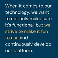 When it comes to our technology, we want to not only make sure it's functional, but we strive to make it fun to use and continuously develop our platform.