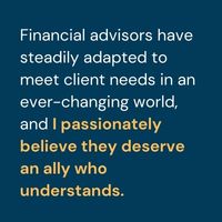 Financial advisors have steadily adapted to meet client needs in an ever-changing world, and I passionately believe they deserve an ally who understands.