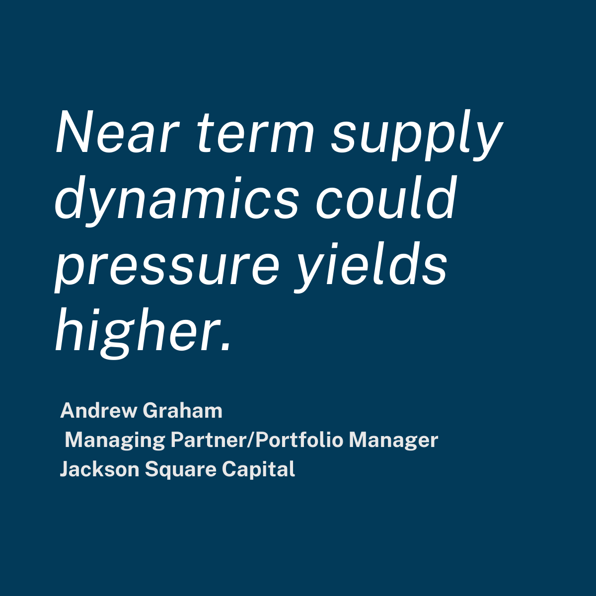 - Near-term supply dynamics could pressure yields higher as the Treasury plans to issue ~$370B worth of bonds over the next three weeks.