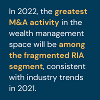 Consolidation among sub-$1 billion AUM RIAs will continue to be robust in 2022, and the trend of increasing M&A activity for sellers over $1 billion in AUM will continue this year as it has since 2019.