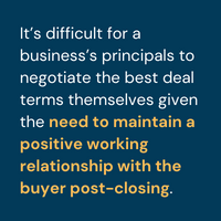 Next, the firm needs an experienced M&A investment banker with completed transactions and active deal flow in the wealth management space, equipping them with real-time knowledge of market valuations, deal structures, other terms and bidding behaviors across a wide range of active buyers in the space, leading to optimal results for sellers. It’s also difficult for a business’s principals to negotiate the best deal terms themselves given the need to maintain a positive working relationship with the buyer post-closing.