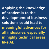 Applying the knowledge of academia to the development of business solutions could lead to meaningful advances for all industries, especially in highly technical areas like AI. This kind of collaboration will yield better results for all sides.