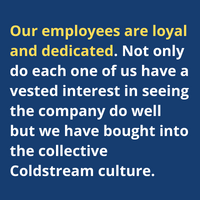 Our employees are loyal and dedicated. Not only do each one of us have a vested interest in seeing the company do well but we have bought into the collective Coldstream culture.