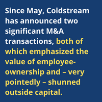 Since May, it has announced two significant M&A transactions, both of which emphasized the value of employee-ownership and – very pointedly – shunned outside capital...especially private equity.