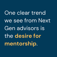 McManus: One clear trend we see from Next Gen advisors is the desire for mentorship, by which we mean an intentional partnership between senior and junior advisors that helps them both develop to the benefit of the firm. Next Gen advisors seek an ongoing relationship with someone they trust and respect, who is willing to invest time and energy in helping them succeed – which is much different from having a boss who merely assigns them responsibilities or manages their time.