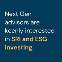 On the product side, Next Gen advisors are keenly interested in socially responsible investing (SRI) and ESG investing. This values-based approach seems to resonate with Next Gen advisors personally, and it’s also a result of Next Gen investors who are more frequently asking for SRI in their portfolios.