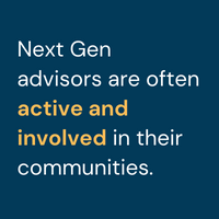 They are looking to continue to use their time efficiently, which often includes a few days working remotely and leveraging technology via digital onboarding, Zoom, Calendly and other tools. Family time is a priority, but Next Gen advisors are often active and involved in their communities as well, volunteering across a wide spectrum of charities as well as coaching youth sports.
