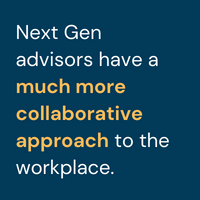 In continuation with this sense of engagement, we find Next Gen advisors have a much more collaborative approach to the workplace. They freely acknowledge expertise in others and seek to find the best resources for their clients, rather than feel they need to know or do everything themselves.