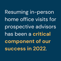 Additionally, resuming in-person home office visits for prospective advisors has been a critical component of our success in 2022. Advisors get to see firsthand what a powerful culture we have and meet the people behind the business. Of the offices that we hosted for home office visits and moved from their prior broker-dealer, the majority of those ended up joining us.