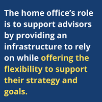 The home office’s role is to support advisors by providing an infrastructure to rely on while offering the flexibility to support their strategy and goals.