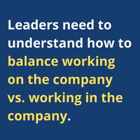 To straddle this line, leaders need to understand how to balance working on the company vs. working in the company. Our incredible executive team and leaders throughout the organization have the operational expertise and strategic mindset that allows me to focus on the company while they take care of tactical execution.