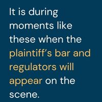 And it is during moments like these when the plaintiff’s bar and regulators will appear on the scene, ready to do some serious finger-pointing.