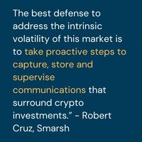 Cruz said, “The best defense to address the intrinsic volatility of this market is to take proactive steps to capture, store and supervise communications that surround crypto investments to show that you are accurately communicating to investors the risks involved.”