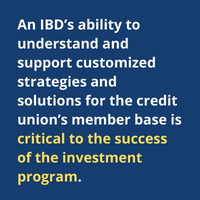A credit union’s charter governs who they can serve, whether a community, select employer group (SEG) or sole sponsor charter, and the IBD’s ability to understand and support customized strategies and solutions for the precise member base is critical to the success of the investment program.