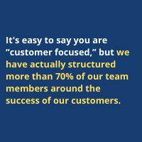 We also continuously build, change, expand, improve and enhance our platform in partnership with our customers. It's easy to say you are “customer focused,” but we have actually structured more than 70% of our team members around the success of our customers.