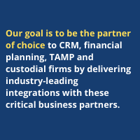 Our goal is to be the partner of choice to CRM, financial planning, TAMP and custodial firms by delivering industry-leading integrations with these critical business partners.