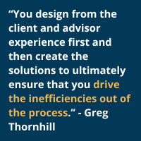 Thornhill, whose firm provides a fully digital custodial account opening process, states that, “We want to get the friction points out of the equation so that the advisor and client truly have an extremely smooth experience of opening an account with us as custodian. Design from the client and advisor experience first and then create the solutions to ultimately ensure that you drive the inefficiencies out of the process.”