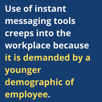 Cruz: Of course, it’s true that WhatsApp may be the only tool that works in a remote geographic location. But more often, use of instant messaging tools creeps into the workplace because it is demanded by a younger demographic of employee.
