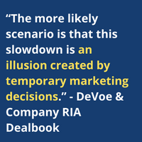 - In addressing the first quarter slowdown, DeVoe stated that “the more likely scenario is that this slowdown is an illusion created by temporary marketing decisions. Celebrating signed deals during a global crisis is not the best PR move.”