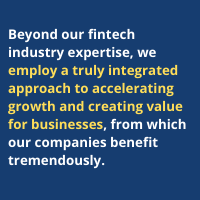 Beyond our fintech industry expertise, we employ a truly integrated approach to accelerating growth and creating value for businesses, from which our companies benefit tremendously.