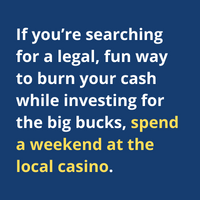 Mommy Miller always said, “If it’s too good to be true, don’t buy it.” If you’re searching for a legal, fun way to burn your cash while investing for the big bucks, spend a weekend at the local casino.