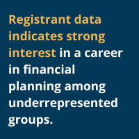 According to the press release, registrant data indicates strong interest in a career in financial planning among underrepresented groups. In 2022, 700 students registered, with a demographic profile including 42% women, 11% Black or African American, 10.5% Asian and 9.7% Hispanic.