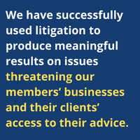 We have successfully used litigation to produce meaningful results on issues threatening our members’ businesses and their clients’ access to their advice. Recently, we took on the Department of Labor in court to protect an essential component of the independent business model – advisors’ independent contractor status.