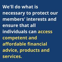 We'll do what is necessary to protect our members' interests and ensure that all individuals can access competent and affordable financial advice, products and services.
