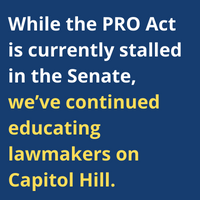 While the legislation is currently stalled in the Senate, we’ve continued educating lawmakers on Capitol Hill, stressing that our members choose to be independent contractors and have a long history of appropriately operating as such.