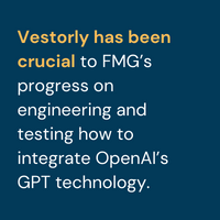 In 2022, the company acquired the artificial intelligence-powered content curation and compliance platform Vestorly, which has been crucial to FMG’s progress on engineering and testing how to integrate OpenAI’s GPT technology. OpenAI grabbed international headlines late last year with its ability to respond to a wide assortment of prompts by almost instantly doing everything from writing coherent poetry to building effective computer programs.