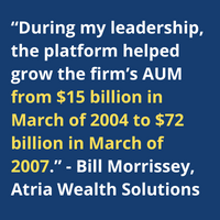 He attributes the success of the platform to the vision he brought to it: “Creating an investment consulting discipline that seamlessly enabled financial advisors to move from commissionable business to a more robust revenue model with more of a fiduciary role with clients, and an emphasis on high-quality, relationship-driven business.”