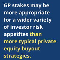 Ultimately, we see the strategy as having equity upside with credit-like downside protection and cash flow. We would thus argue that GP stakes may be more appropriate for a wider variety of investor risk appetites than more typical private equity buyout strategies.