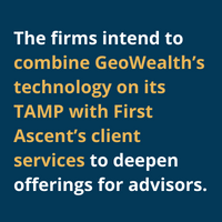 “By combining GeoWealth’s robust technology with First Ascent’s full-service approach, we’re able to serve the broader community of independent advisors,” said Colin Falls, President and CEO of GeoWealth. “This acquisition represents a natural alignment between two companies that believe that a tech-forward approach is the way of the future and are unified in their mission to modernize the TAMP business model for the benefit of advisors and their clients.”