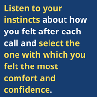 Even when they’re qualified, not every lawyer you interview will be the right fit for you and your personality. Listen to your instincts about how you felt after each call and select the one with which you felt the most comfort and confidence. You’ll work together frequently over the coming months, and you don’t want to second-guess your choice.