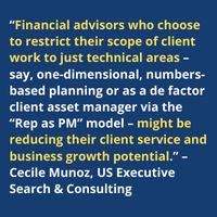 And one thing is clear: Financial advisors who choose to restrict their scope of client work to just technical areas – say, one-dimensional, numbers-based planning or as a de facto client asset manager via the “Rep as PM” model – might be reducing their client service and business growth potential.