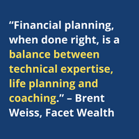 Brent Weiss, Facet Wealth: Financial planning, when done right, is a balance between technical expertise, life planning and coaching. This is how Facet has operated from Day One, so we didn’t have to make a shift in our service to clients.