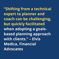 Shifting from a technical expert to planner and coach can be challenging, but quickly facilitated when adopting a goals-based planning approach with clients, where the discussion is not just about numbers and portfolios, but instead about goals, dreams and aspirations. We pair great technology from our broker-dealer, with one of our trained business consultants to help advisors very quickly make this change.