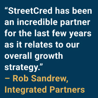 “StreetCred has been an incredible partner for the last few years as it relates to our overall growth strategy. Through their efforts we have significantly enhanced our brand and built a strong voice within the industry,” said Rob Sandrew, Chief Growth Officer of Integrated Partners.