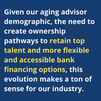 Given our aging advisor demographic, the need to create ownership pathways to retain top talent and more flexible and accessible bank financing options, this evolution makes a ton of sense for our industry. We expect to see continued growth over the next few years, as well.