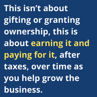This isn’t about gifting or granting ownership, this is about earning it and paying for it, after taxes, over time as you help grow the business.