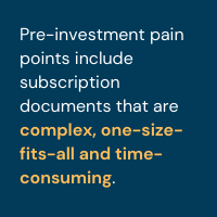 Historically, yes. First, there are pre-investment pain points such as subscription documents that are complex, one-size-fits-all, and time-consuming endeavors.
