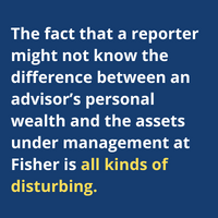 The fact that a reporter might not know the difference between Youmans’ personal wealth and the assets under management at Fisher is all kinds of disturbing. Does the reporter own all the cash in USA Today’s coffers?