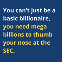 However, if you’re Elon Musk you can tout Dogecoin and cause a bubble without facing consequences. The difference here: you can’t just be a basic billionaire, you need mega billions to thumb your nose at the SEC.