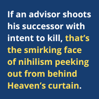 By this same token, if a financial advisor shoots his successor with intent to kill, that’s the smirking face of nihilism peeking out from behind Heaven’s curtain – metaphorically, of course.