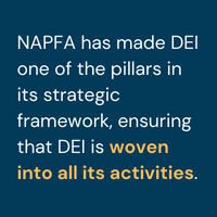 In addition to the training, NAPFA developed a DEI toolkit, hosts quarterly conversation circles and two to three webinars each year on DEI topics, and ensures that DEI is covered in its conferences. NAPFA has made DEI one of the pillars in its strategic framework, ensuring that DEI is woven into all its activities, including volunteer training and member recruitment.