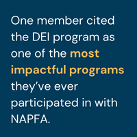 The program is a catalyst for continued change and progress in DEI within the NAPFA community and beyond to the profession. NAPFA is dedicated to creating resources and spaces where members can connect and move forward in their DEI journeys, and this program is a concrete example of how NAPFA can be a partner along the way.